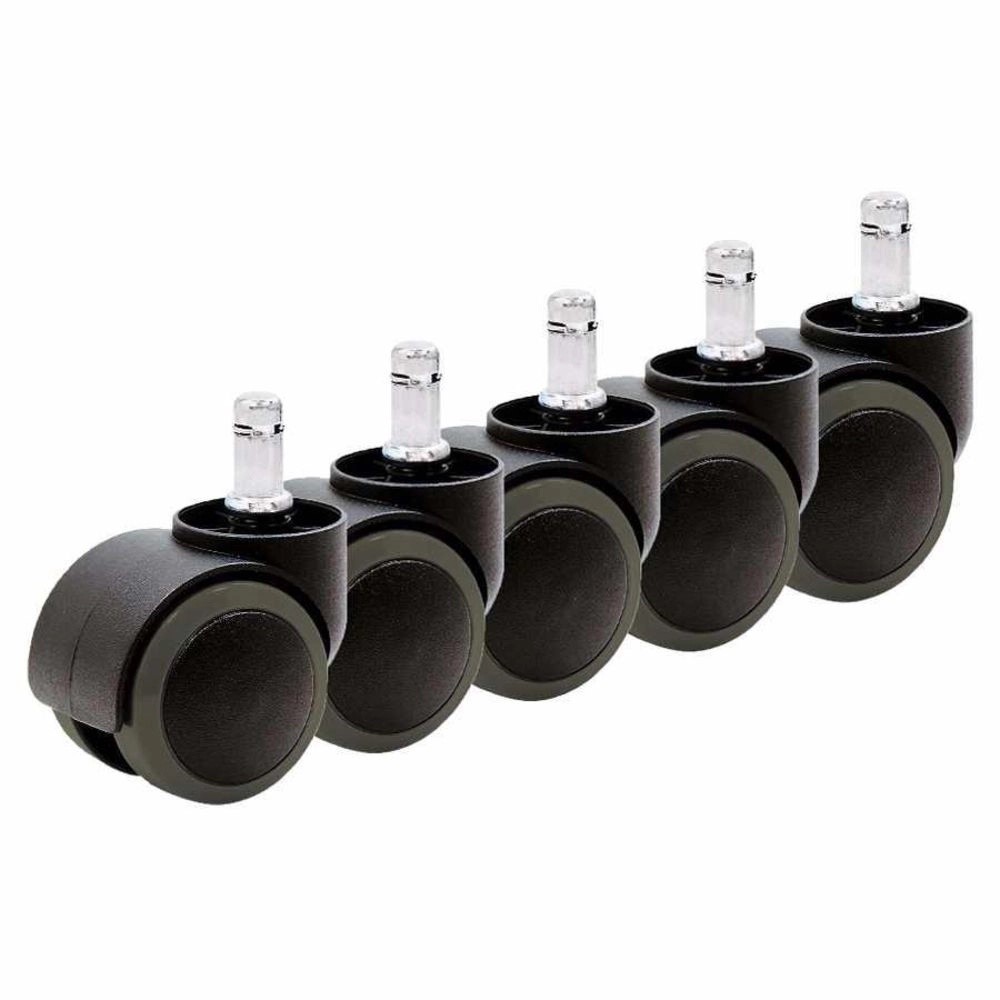 - Rodízios de PU: mais adequados para locais que exigem silêncio, conforto e preservação do revestimento do piso.